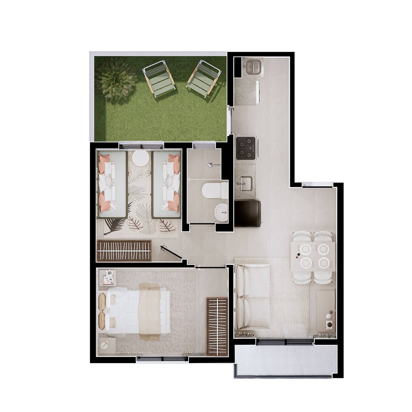 • Plantas inteligentes e confortáveis de 44,5m² e 45m²;